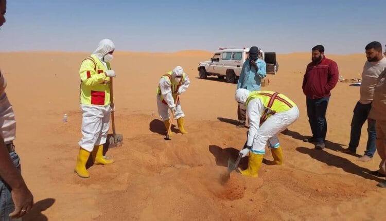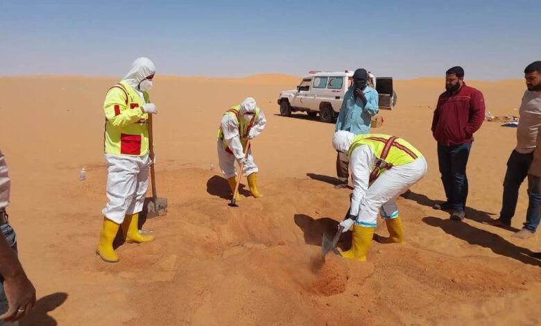 Follow-up- Al-Zawiya Net- The ambulance team in the city of Al-Kafra in Libya recovered 7 bodies of the bodies of the Sudanese refugees who died in the desert after their car was broken.